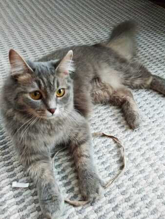 Besitzerin hat jemanden umbegracht und musste ins Gefängnis. Sie wusste das und hat mich noch vor dem Gericht gebeten, ihre Katze aufzunehmen. Ich habe zugesagt. Als Plucha noch in der Quarantäne im Käfig sass, weil sie ungeimpft zu mir gekommen war, haben meine Bekannten die Katze gemerkt und sie tat ihnen leid, weil sie im Käfig sass. Und sie haben sie adoptiert. so schön und glücklich ist sie heute.