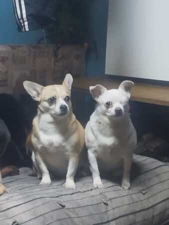 Hier ist Mosja zusammen mit einem anderen Hund bei sich zu Hause.