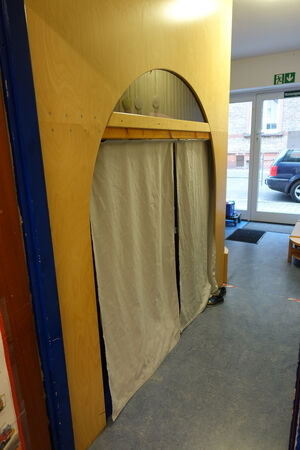 Dieser ist nun gut gefüllt mit unterschiedlichen Materialien zum Kreativ werden und birgt auch noch die Garderobe der Mitarbeiter. Mittels dieses Tetris haben wir in unserem Flur und im Gruppenraum endlich Platz für eine Hochebene geschaffen. Diese ist zwar nicht neu, wurde aber für unsere Einrichtung angepasst und zudem mit Hängesesseln und Vorhängen kuschelig ausgestattet. Hier können sich die Kinder zurückziehen um sich auszuruhen oder in Kleingruppen - auch mal unbeobachtet - zu spielen. Mit diesem Raum im Raum ist es uns möglich mehrere Aktivitäten anzubieten um den unterschiedlichen Bedürfnissen und Interessen der Kinder gleichzeitig "Raum" zu geben. Die Kinder lieben die Hochebene, sie vergrößert unsere Einrichtung nicht nur um Platz sonder auch um neue Erfahrungsräume.