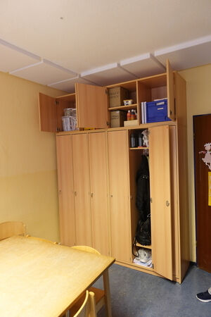 Dadurch haben wir Platz im Personalzimmer gewonnen, den wir mit einem wunderschönen Materialschrank gefüllt haben.