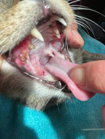 Wir fangen an großen Streunerhotspots in Dörfern des Landkreises ein, lassen die Tiere kastrieren und medizinisch behandeln. Die letzten drei Fälle waren zwei Katzen und ein Kater. Alle drei wurden kastriert, bei einer Kätzin offenbarte sich eine Katastrophe im Mäulchen, ihr seht es an den Bildern. Natürlich lassen wir das auch behandeln, auch wenn wir schon Angst vor der Rechnung haben. Da liegen wir vermutlich fast vierstellig. Aber der Zustand der Maus hat sich nach Entzündungshemmern, Antibiose und Zahnextraktionen verbessert und das ist das Wichtigste!