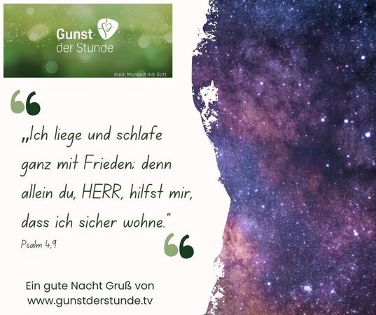 Zum Start in die neue Woche wünschen wir Ihnen Gottes Segen und das Wissen, dass wir in der Gunst Gottes stehen. Schlafen Sie gut und behütet.
