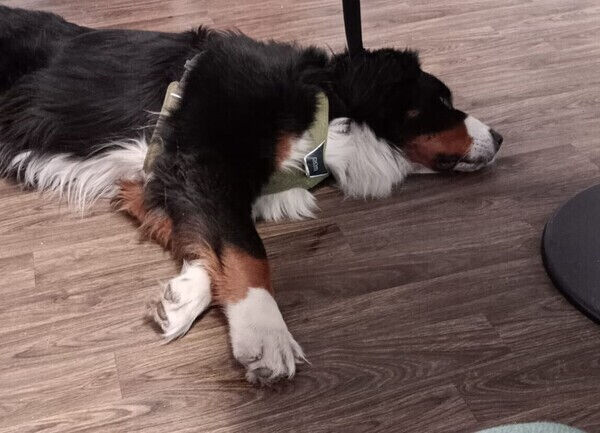 Das Stillhalten bei den Übungen ist nicht immer einfach für Anton, der natürlich auch frustriert ist, über sein eingeschränktes Leben momentan. Dann reißt er gerne mal aus Frust, den ein oder anderen Grasbüschel aus dem Boden. Um unseren Anton mehr schöne Momente zu verschaffen, gibt es natürlich mal ein Kauholz, oder Leckerlis im Kong versteckt, sowie viel Zeit bei uns, wenn wir vor Ort sind.