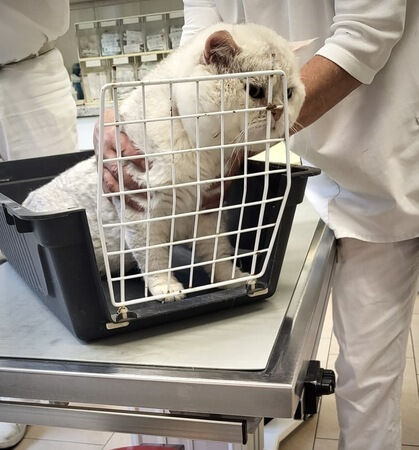Ebenfalls zum Tierarzt musste unser lieber Pflegekater Filou. Er hat kaum mehr gefressen und fühlte sich sichtlich schlecht. Leider hatte er Wasser in der Lunge und muss nun neben seinen Schilddrüsen-Problemen auch dauerhaft dagegen ein Medikament bekommen.