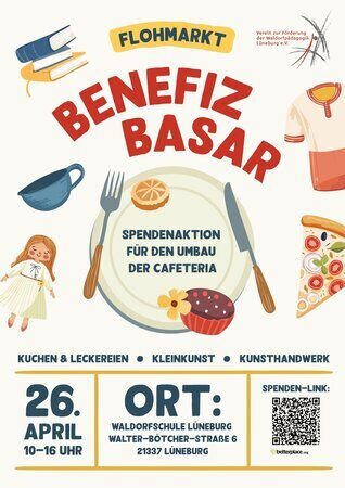 Zwei Eltern haben sich zusammengetan und mit großer Professionalität begonnen, einen Flohmarkt „Benefiz-Basar“ zugunsten der Schulküche zu organisieren. Der Basar findet am Samstag, den 26. April von 10:00 – 16:00 Uhr statt, 50% der Erlöse gehen als Spenden an die neue Einrichtung unserer Schulküche. Bitte sagt es weiter und plant einen Besuch ein!