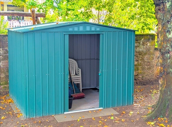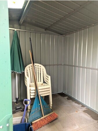 Der im Frühjahr angekündigte nächste größere Arbeitsschritt war das Gartenhäuschen für unsere Garten- und Spielgeräte. Es war gar nicht so einfach, ein Gartenhaus zu finden, dessen Türe hoch genug für die Tischtennisplatte ist, die wir uns ausgesucht haben.