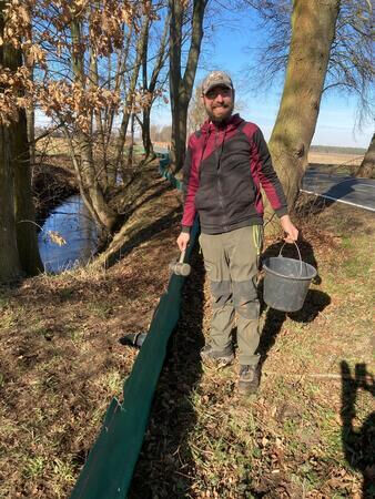 Neben der Tierpflege direkt auf dem Hof geht es uns natürlich auch darum, den Lebensraum und die Nahrungsgrundlagen der Weißstörche zu erhalten. Auch hierbei ist unser Tierpfleger eingebunden. Aktuell betätigt er sich z.B. als "Krötentaxi" und betreut mit Unterstützung mehrerer Freiwilliger den Krötenzaun in der Nähe des Storchenhofes.