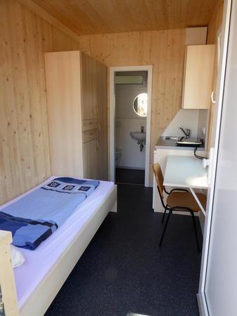 bezahlbaren Unterkunft für Wohnungslose aufzeigen und erproben. Das prema®-Modulhaus in der Aufbaugilde-Ausführung bietet auf ca. 11 m² eine Vollausstattung. Neben dem Wohnraum mit Bett, Stauraum und Küche gibt‘s einen separaten Sanitärbereich mit Dusche, Waschbecken und Toilette. Auch wenn 11 m² sehr kompakt erscheinen – für Menschen ohne Wohnung wäre ein Minihaus immer besser und sicherer als Übernachtungen auf der Straße – eine kreative, günstige und ökologisch nachhaltige Wohnlösung.