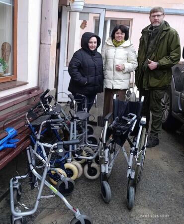 Einige Hilfsgüter, wie Rollatoren und Rollstühle, sind bereits in der Ukraine angekommen.