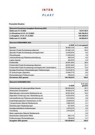 Danke Im Jahr 2023 konnten wir 149.000 € an Spenden generieren, von denen wir 139.000 € ausgegeben haben. Damit haben wir das Vorjahresniveau knapp unterschritten. Wir sind mit dem Ergebnis sehr zufrieden. Um eine solche Summe zu erzielen, bedarf es der permanenten Arbeit und Überzeugung. Ein wesentlicher Anteil kommt von den Teammitgliedern (finanziell und materiell) und Einzelspendern, die unsere Arbeit wertschätzen. Stellvertretend für die Anzahl der Spender erlauben wir uns, namentlich die Interplast-Stiftung, pro Interplast Seligenstadt e.V., FENOM Dresden mit Diana und Steffen Koch sowie Karina und Thomas Köhler , Vocadeo e.V. mit Matthias Doetz und Michaela Berndt, Evangelischer Kirchenkreis Schwalm-Eder e.V. mit Daniel Helfers, Haus des Stiftens und Global Foundries mit Jana und Daniel Hahn, Sebastian Gampe, Hans-Joachim Schütt, Sandra Lorenz, Dr. Günther Siemoneit, Dr. Ulrike Seeliger-Ollman, Dr. Gunhild Zimmermann, Dr. Frank Bosselmann, Linda Auge, Lisa Szyper, Sonja Kunkel, Eva Spieler, Jörg Geppert, Anke Arnold, Ralf Georgi, Enrico Maes, Susanne Anacker-Juhra, Martina Kuhlmann, Bianca Lumpp, Klaus Janssen, Daniel Thüring, Dr. Sabrina Wicht, Marion Nüllen, Clara Hartwig, Zohra Schardt, Mandy Pleikies, Susan Raymond, Julia Hoegl, Dr. Emanuel Meyer, Silke Scheerer, Dr. Anna Boecker, Udo Würfel, der Band Hausgemacht, Trusted Jobs GmbH, Kathrin Michel, Artur Tupping, Pius Strotkötter, Axel Strotkötter, Peter Strotkötter und Marcus Strotkötter zu nennen. Darüber hinaus konnten wir über Veranstaltungen wie Sommermusikabend in der neuen Kirche der Neuapostolischen Gemeinde Dresden, DJ-Abend der Kernzone Dresden und Vortragsveranstaltungen einige Spenden generieren. Ein besonderer Dank geht auch an Dr. Heinz Schöneich, Ina Rehn, Dr. André Borsche und Camilla Völpel für ihre Unterstützung.