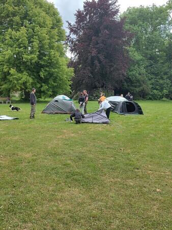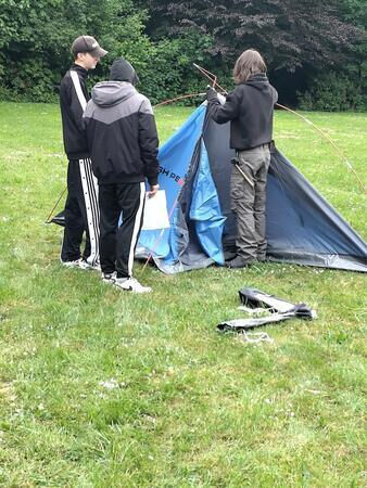 Beim Probeaufbau der Zelte werden die ersten Hürden gemeistert.