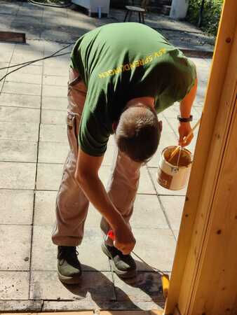 Die Holzfassade erhielt einen wetterfesten Anstrich, sodass die Hütte nun bestens für die kommenden Jahre gerüstet ist.