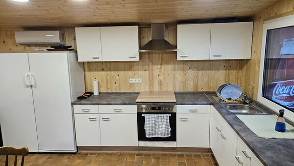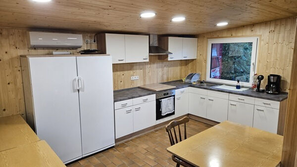Ein echtes Highlight: Unsere Hütte verfügt nun über eine komplett neue Küche inklusive Herd, Backofen, Dunstabzugshaube sowie zwei neuen Kühlschränken für Getränke und Speisen.