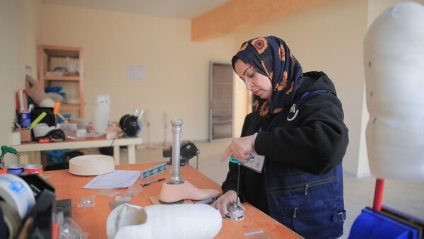 In unserer Prothesenwerkstatt in Gaza gibt sie täglich ihr Bestes, um Menschen mit amputierten Gliedmaßen wieder auf die Beine zu helfen. Trotz Angst. Trotz Mangel an Material. Trotz allem.