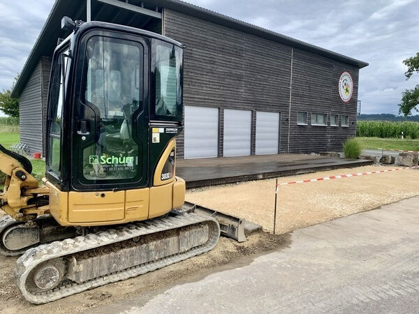 Heute haben die Arbeiten am Vorplatz offiziell begonnen: Die Firma Gartenbau Schurr ist mit den ersten Maßnahmen gestartet. Damit wird das Spendenprojekt, das durch zahlreiche Unterstützerinnen und Unterstützer möglich gemacht wurde, nun schon sichtbar umgesetzt. Bereits jetzt zeigt sich, wie sich das Gelände Schritt für Schritt verändert. Wir freuen uns sehr über diesen wichtigen Meilenstein und bedanken uns herzlich bei allen, die das Projekt ermöglichen. Über den weiteren Fortschritt halten wir euch auf dem Laufenden.