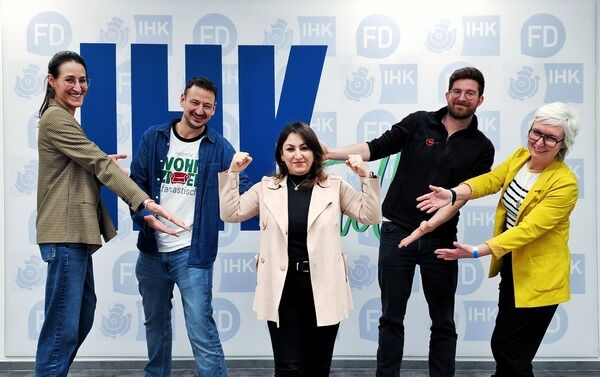 Gemeinsam kann es klappen (v.l.n.r.): Sarah Herrlich, Christoph Kümpel und Farzane Yaqin vom Verein Welcome In! Fulda, Luke Williams von den Wirtschaftsjunioren und Denise Otto von der Industrie- und Handelskammer Fulda.