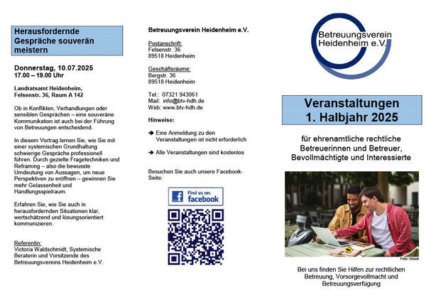 Um unsere Ehrenamtlichen und Interessierte stets auf dem Laufenden zu halten, wurde unsere Website neu gestaltet (http://www.btv-hdh.de) und unser Infoflyer aktualisiert. Kürzlich ist auch die dritte, aktualisierte Auflage unserer Vorsorgemappe erschienen mit umfrangreichen Informationen zu Vorsorgeverfügungen wie Vollmachten, Betreuungsverfügung, Patientenverfügung und Bestattungsverfügung.