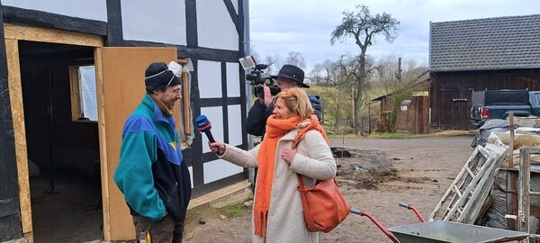 Am Freitag hatten wir auf Hof Kotthausen Besuch. Ein Fernsehteam vom WDR hat sich unser Bauprojekt angeschaut und uns beim Arbeiten gefilmt. Am Dienstag, den 10. Februar, um 19:30 Uhr gehen wir dann im wahrsten Sinne des Wortes life. Denn Katja Dern wird in der Lokalzeit Bergisch Land von unserem Projekt und der Sanierung berichten. Wir sind alle schon aufgeregt und hoffen, uns für den Beitrag von unserer besten Seite gezeigt zu haben.