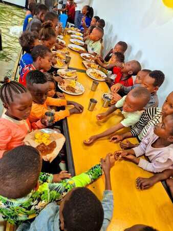 Das Küchenpersonal und auch ich selbst hatten alle Hände voll zu tun, um unsere hungrigen Schützlinge in der bunt dekorierten Halle zu verpflegen. All dies fand nicht ohne Gebete und viele gute Wünsche der Festredner statt, wofür wir sehr dankbar sind.