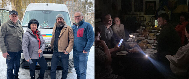 Als wir morgens in der Ukraine ankamen, gab es in der Nacht erneut schwerste Angriffe, auch im Westen der Ukraine vor allem gegen die Energieinfrastruktur, so daß die gesamte Ukraine bis in die Nachmittagsstunden ohne Strom war (bei minus 10 bis 15 °C) ! An diesem Tag gab es in Sosnivka nur ca. 2 h Strom. Unser erstes Ziel war es 10 m Ofenrohr und weitere Hilfsgüter (vor allem Kleidung, Nahrung) dorthin zu bringen.