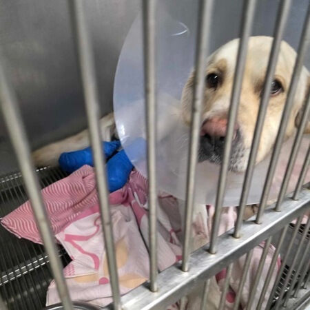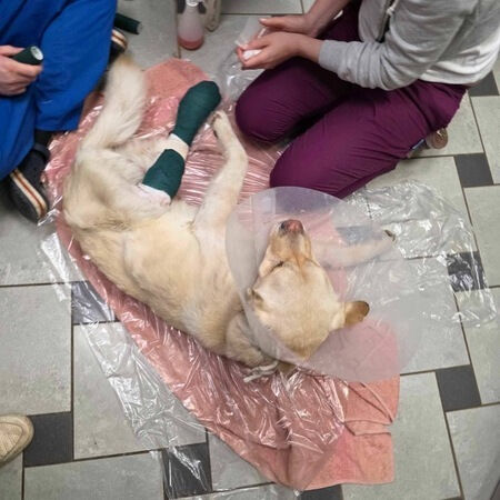 Gandalf wurde von einem Spezialisten untersucht – alles lief gut und er hat alles tapfer mit wedelndem Schwanz gemeistert.