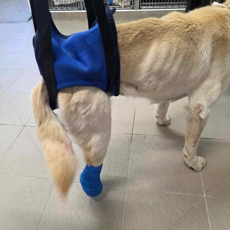 Aktuell wird er vor Ort intensiv versorgt – seine Beine müssen täglich steril behandelt und verbunden werden.