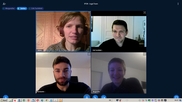 Legal Team: Mit Konstantin Burudshiew, Erik Tuchtfeld und Margarethe Pfeifer stehen der ehrenamtlichen Gruppe Personen mit juristischer Ausbildung zur Verfügung, die sich fortlaufend den rechtlichen Bedingungen für eine Rückkehr in die Philippinen widmen (Hier: Videokonferenz)