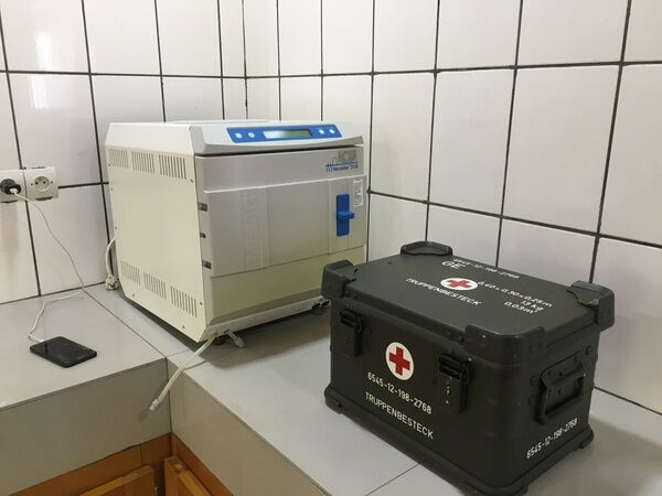 Dr. Cheuteu und seine Mitarbeiter räumen das Inventar aus der bisherigen Klinik …