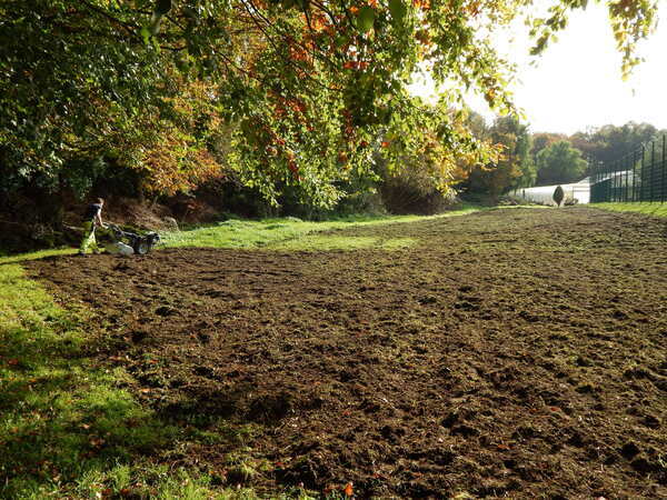 Die Rasenfläche hat eine leichte Neigung und ist in nassen Jahren teilweise überstaut. Deshalb verwenden wir im unteren, feuchteren Bereich eine andere Saatgutmischung als im oberen, trockenen Bereich. Die Zusammensetzung der Pflanzenarten ist auf die unterschiedlichen Standortbedingungen angepasst. So steht dem Erblühen der Wiese im nächsten Frühling 2020 nichts mehr im Wege!