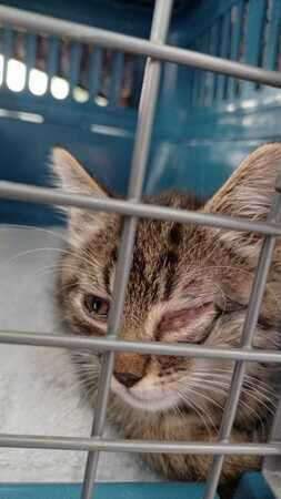 Unser kleiner Georgie musste mehrfach zum Tierarzt, da er eine schlimme Augenentzündung auf der linken Seite hatte.