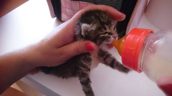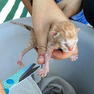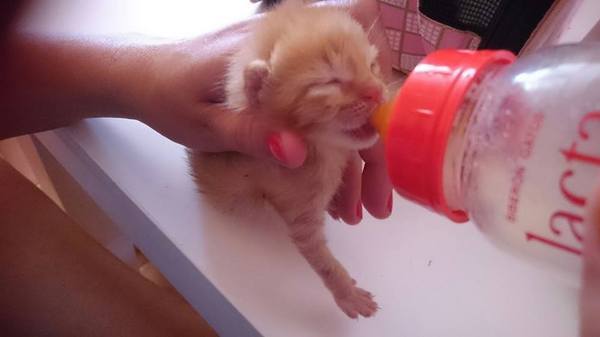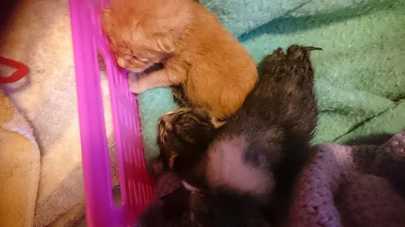Der Sohn einer Bekannten von ihr hat drei Kitten gefunden, bei denen sogar noch die Nabelschnur dran war. Sie können maximal zwei Tage gewesen sein. Auch diese haben zum Glück überlebt: