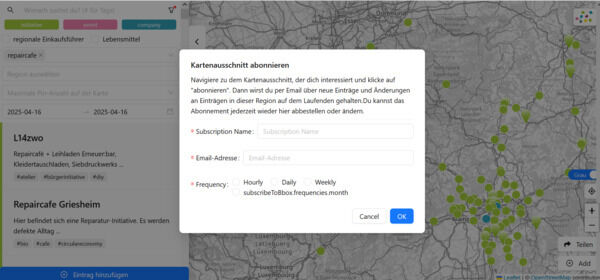 Den Entwicklungsprozess stellen wir wie immer transparent auf Gihub dar: https://github.com/orgs/kartevonmorgen/projects/27/views/1
