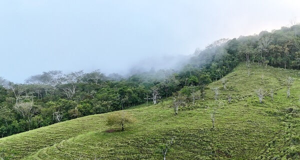 Wiederaufforstung auf Finca Alicia Das über 900 ha grosse Tal von Hojancha war in den 70er Jahren grösstenteils entwaldet und in Viehweiden und Plantagen umgewandelt worden. Da sich mit dem fehlenden Wald auch das Mikroklima änderte, hatte der Kahlschlag letztlich dramatische Folgen für die lokale Bevölkerung: Es gab immer weniger Niederschlag und es gab einen Mangel an Trinkwasser. Alle Bäche versiegten während der Trockenzeit. Heute sind auch mit Hilfe von Tropica Verde mehr als 60% des Waldkessels wiederbewaldet. Mit erfreulichem Effekt für die Bevölkerung: Das Wasser kam zurück! Heute führen die Bäche wieder über das ganze Jahr Wasser. Dazu hat auch das neueste Puzzlestück von Tropica Verde beigetragen, die Finca Alicia. Hier wurden weitere 3 ha (knapp 1000 Bäumchen) zwischen 2019 und 2025 mit über 30 wichtigen Baumarten aufgeforstet. Die Drohnenaufnahmen aus dem Frühjahr 2025 zeigen, wie gut sich der Jungwald entwickelt hat (Foto 1) und wie der Zustand vor der Aufforstung war (Foto 2, Viehweide vs. Finca Alicia). Man kann auch schön erkennen, wie Regenwolken über der Aufforstung stehen. Und mit der Natur kommen auch immer mehr Tier- und Pflanzenarten zurück in die Region. Diese schönen Erfolge sind nur dank eurer Unterstützung möglich!
