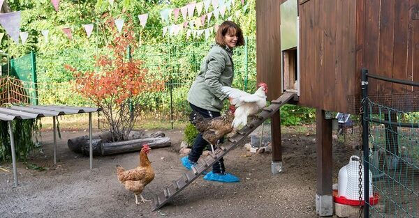 Seit 2023 leben Hühner in einem eigenen Gehege im Garten des Hospizes und erfreuen die Gäste, deren Angehörige und die Mitarbeitenden. Ehrenamtliche kümmern sich um die Versorgung der derzeit 5 Hühner.