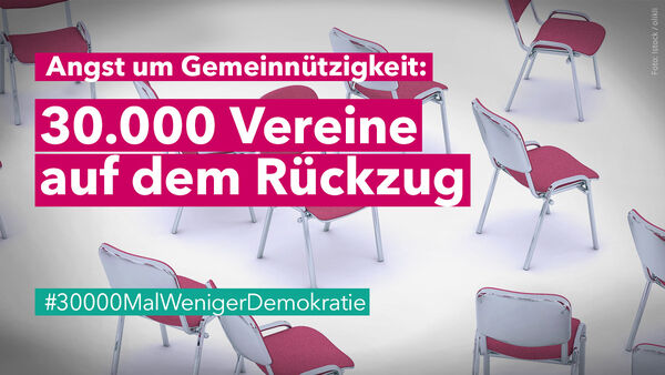 Mehr dazu hier: http://www.zivilgesellschaft-ist-gemeinnuetzig.de/30000MalWenigerDemokratie