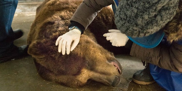 Ende Februar wurde PARDO im Bärenpark Worbis gründlich durchgecheckt. Damit es schnell ging, gleich von drei Veterinären gleichzeitig. Am Kopfende war das Gebiss dran. In der freien Natur haben Bären selten Karies. Doch im Zirkus wurde PARDO mit Süßigkeiten zu seinen „Kunststücken“ animiert. Durch den Zucker sind seine Zähne teilweise verfault. Frau Doktor Schmidt hatte ordentlich zu tun mit Bohrer und Plomben. Leider hat PARDO außerdem Trübungen in den Augen, die irgendwann zum Erblinden führen können, auch das ist ein Resultat der schlechten Ernährung. Derweil wurden PARDOS Gelenke geröntgt, immerhin hat er kaum Arthrose. Gleichzeitig wurde er noch kastriert. Nach diesem Rundum-Check konnte sich PARDO ausschlafen und war schnell wieder fit. Bald ist die Quarantäne vorbei. Dann beginnt sein neues Leben erst richtig: Er darf in die großen Freianlagen und lernt Artgenossen und Widersacher kennen. PARDO wird in den nächsten Jahren intensive Pflege und einige tierärztliche Behandlungen benötigen. Wir wären über Spenden für PARDOS Gesundheit sehr dankbar. Zwei Mondbären warten seit Jahren