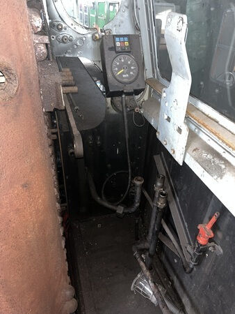 Auf dem Führerstand lässt es sich nur noch schwer erahnen, dass von hier aus die Dampflokomotive bedient wird. Sämtliche Armaturen befinden sich schon lange nicht mehr am Kessel. Auf Grund der Tatsache, dass auch das Führerhaus abgenommen wird, müssen dementsprechend auch alle Leitungen und Verbindungen zwischen dem Führerhausboden und der Wand demontiert werden, damit es später beim Abheben zu keinen Beschädigungen an den Leitungen kommt. Da sind wir gerade noch dabei, dass alles im, am und um das Führerhaus herum abgebaut wird.
