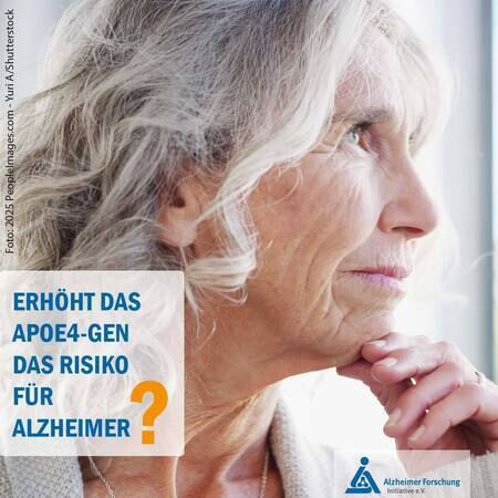 Das ApoE4-Gen ist eine von drei Versionen des Apolipoprotein-E-Gens. Es spielt eine Rolle im Fettstoffwechsel und beim Cholesterintransport. Im Gegensatz zu anderen Genmutationen, die die seltene familiäre Form der Alzheimer-Krankheit auslösen, erhöht ApoE4 das Risiko, im höheren Alter an Alzheimer zu erkranken. 2024 wurde bekannt, dass insbesondere Menschen mit zwei Kopien dieses Gens ein etwa 10-fach erhöhtes Erkrankungsrisiko haben.  Wichtig: Personen mit einer doppelten Kopie des ApoE4-Gens können nicht mit den neuen Antikörpern Leqembi und Kisunla behandelt werden, da das Risiko für Nebenwirkungen zu hoch ist.