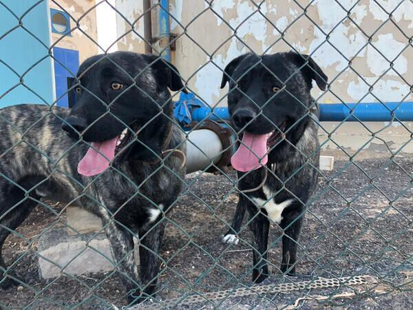 Sowie die 2  knapp 1jährigen Bardino-Junghunde Patuco und Rantanplan, die auf einem Fabrikgelände einer Entsalzungsanlage leben.