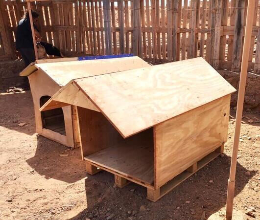 Wir würden den Beiden gerne solche Hütten bauen, damit sie in dieser unglaublich lauten Entsalzungsanlage einen kleinen Rückzugsort haben und wir hoffen, dass der Besitzer uns das erlaubt. Natürlich würden wir das auf eigene Kosten machen.