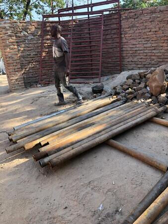 Die Schule ist auf einer Anhöhe. Wir hatten bereits damit gerechnet, dass wir tiefer als üblich bohren müssen - aber dass nach 60 m Tiefe immer noch kein Wasser ansteht hatten wir nicht erwartet.