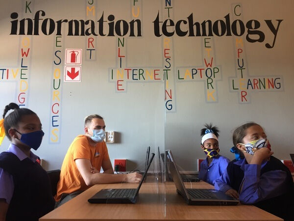 Endlich konnten wir mit den Schulkindern im neu entstandenen Computerraum sitzen und uns über die 45 Laptops und 15 E-Book-Reader freuen, die wir bei LABDOO erworben hatten, und über mehrere Monate für den Versand der Geräte nach Südafrika kämpften. Da die Akkus der generalüberholten Geräte nicht mitversandt werden konnten, werden sie nun nach und nach von unseren Volontär*innen im Handgepäck im Flugzeug transportiert. So hatten auch wir ein halbes Dutzend davon dabei.