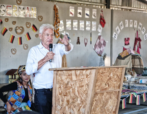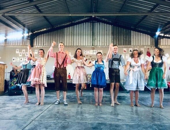 Ganz besonders haben wir uns gefreut, dass zeitgleich mit unserem Besuch auch das Annual Arts & Cultural Festival 2021 der Aussenkehr Primary School stattfand. Fünf ethnische Gruppen begeisterten die Farmgemeinde und uns von ihren Vorführungen. Auch unsere Volontär*innen waren mit „Entertainment: Volunteers“ auf dem Programm-Zettel angekündigt. Seit Wochen hatten sie Walzernund Foxtrott einstudiert. Und wir hatten ihre Dirndl und Lederhosen im Gepäck, die uns ihre Eltern und Freunde schnell noch in die Stiftung geschickt hatten – ein sehr schöner Auftritt, den die Gemeinde gleich zweimal an dem Abend sehen wollte.