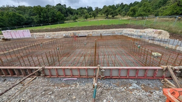 Nach den Erdarbeiten ging es weiter mit der Bodenplatte und dem Einbau einer Fussbodenheizung, denn unsere Tiere sollen es ja künftig schön kuschelig haben.