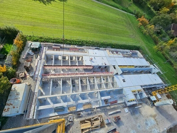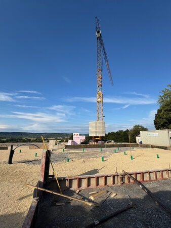 Die Rohbauarbeiten gingen dann bis in den Spätherbst und jetzt zeigt der Blick von oben aus dem Kran wie es später mal aussehen soll.
