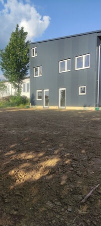 Langsam nehmen auch die Außenanlagen Gestalt an. In Kürze wird der Außenwasserhahn installiert. Dann kann mit der Aussaat des Spielrasens begonnen werden.
