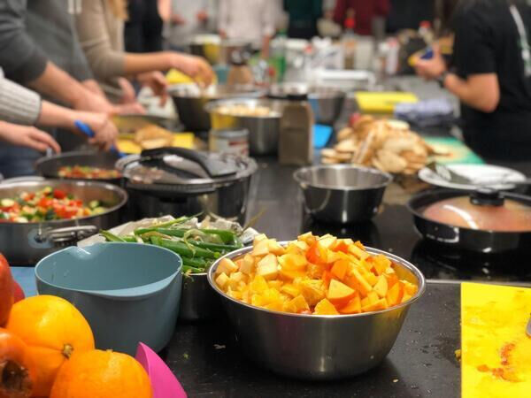 - Weiter ging es am 22. Januar 2020 mit unserer Schnibbelparty in der Diätfachschule, welches unsere Vereinsmitglieder Kim und Lucas organisierten. Der Ansturm und das Interesse waren enorm. Glücklicherweise belieferten uns Aldi Süd und Foodsharing Würzburg mit genügend Lebensmittel, sodass der Kreativität keine Grenzen gesetzt waren und alle satt werden konnten.
