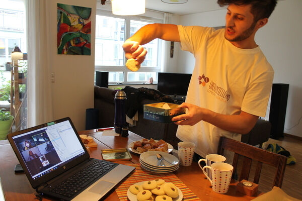 - So konnten wir am 24. Mai 2020 gemeinsam das Fastenbrechen und Zuckerfest über Zoom feiern. Jan übernahm ein wenig die Moderation, während Abdul uns das Thema zum Fasten und Fastenbrechen aus seiner Heimat Syrien nähergebracht hat. Die Teilnehmer*innen bereiteten im Voraus zuhause eine Süßspeise zu und tauschten sich darüber aus.