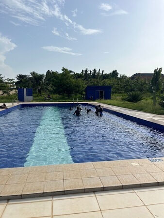 Sobald wir mit den Mototaxis beim Hotelgelände ankamen, stürmten die Kinder in die Umkleidekabinen. Man konnte gar nicht so schnell schauen, da sprangen die Kids schon in die „Fluten“ und der Badespaß nahm seinen Lauf.