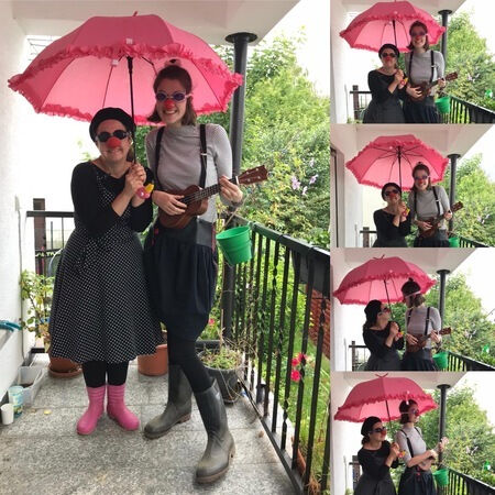 Mittlerweile haben wir bereits 77 Miniauftritte an Haustüren, in Hinterhöfen, Gärten und Treppenhäusern gespielt, wir waren für Euch in Darmstadt, Roßdorf, Pfungstadt, Zwingenberg, Bensheim, Gundernhausen, Ober-Ramstadt, Malchen, Groß-Umstadt, Brombach, im Mühltal, im Fischbachtal, in Fürth, in Griesheim, Seeheim-Jugenheim, Groß-Zimmern, Riedstadt, Reinheim, Krumbach, Alsbach und Lengfeld.... Haben in Kindergärten für die kleinen Notbetreuungsgruppen gespielt und für geflüchtete Familien in Wohneinrichtungen. Wir haben Geburtstagskinder, Hochzeitspaare und Jubilanten besungen und ausgerüstet mit Ukulele, Desinfektionsspray, Metermaß und kleinen Präsenten ganz vielen Familien ein wenig Abwechslung in die Coronatristesse gebracht.